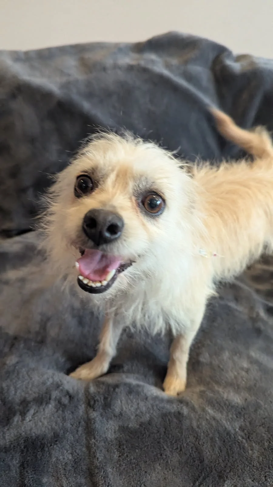 Meet Happy! He is 3-year-old Chihuahua/Terrier mix. He is about 10 pounds and a total love bug. Him and Skipper (maybe his brother) were found on the streets in Texas. They were starving and had no shelter. Thanks to our rescue partner they found them. They nursed them back to health before coming to us. He is great with dogs of all sizes and loves everyone! This guy would fit into most households. He adjusts very well. We are working on his house training (we use a belly band) He is crate trained.